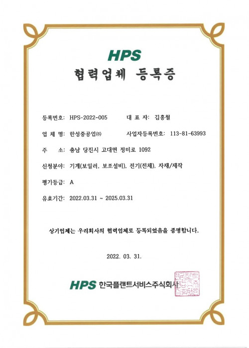 HPS 협력업체 등록증