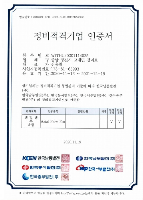 업체 등록 인증서
