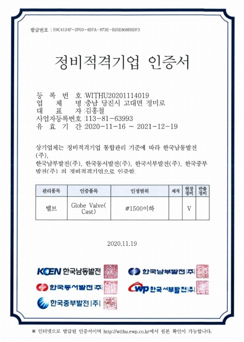 업체 등록 인증서