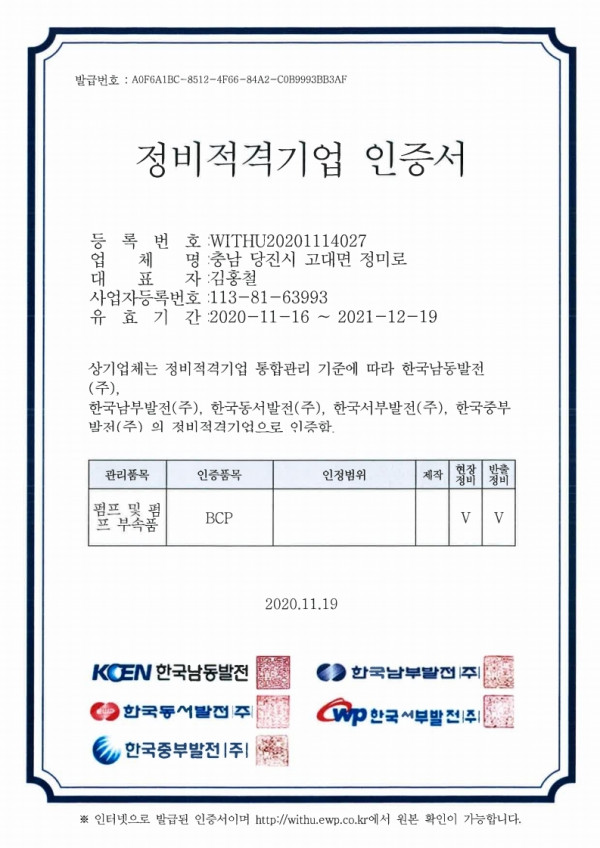 업체 등록 인증서
