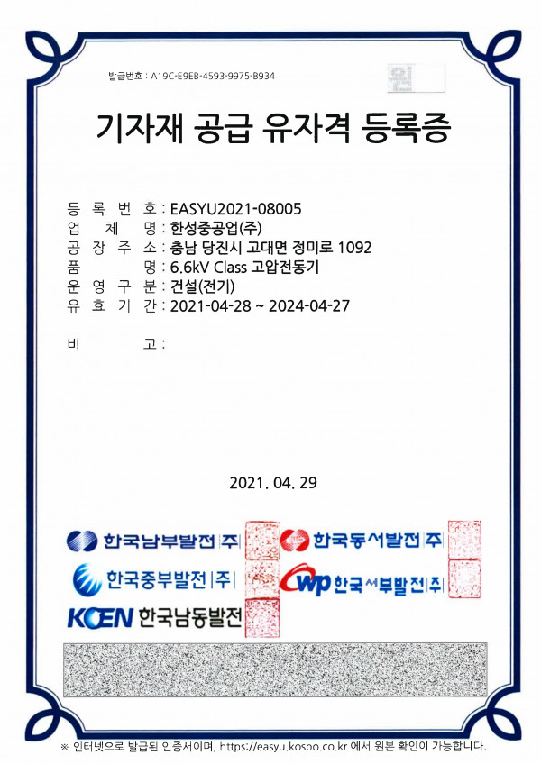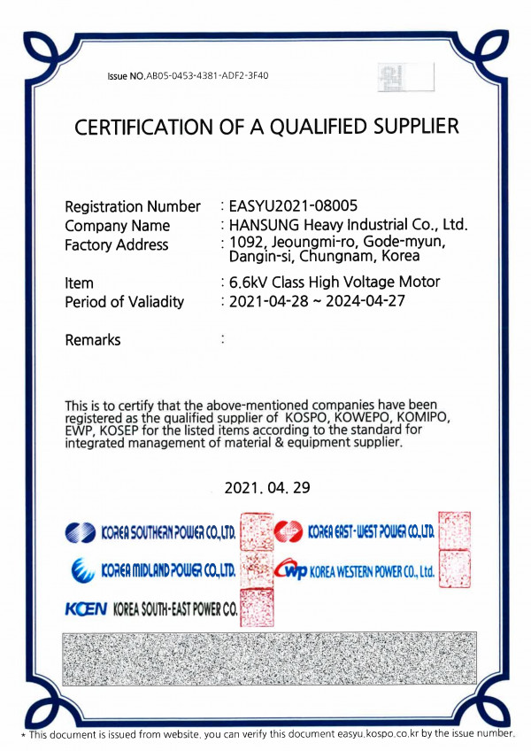 6.6kV Class 고압전동기