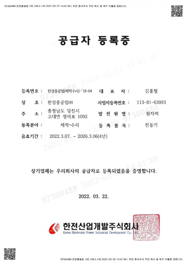 업체 등록 인증서