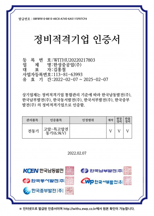 정비적격기업 인증서