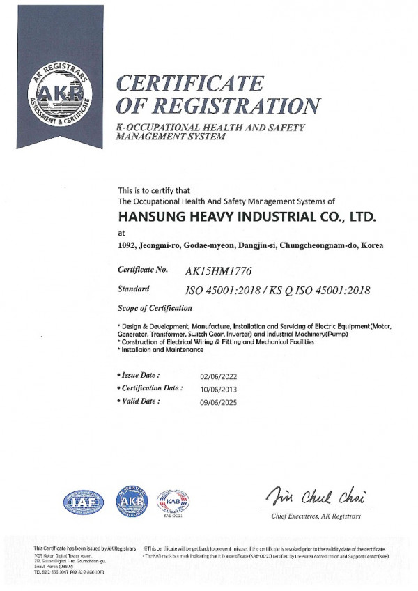 안전보건경영시스템 인증서