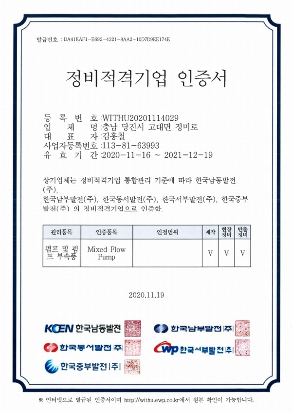 펌프 및 펌프 부속품_Mixed Flow Pump