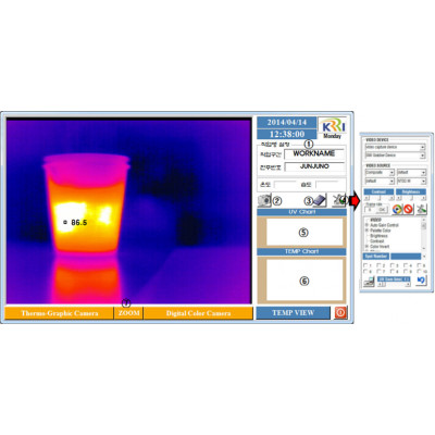 6. 설정창으로 영상 보정 및 조정, 최대 10개 온도 표시 마커등의 기능을 수행 그 외 다양한 세부 기능 있으며 고객 및 진단자의 요구에 따라 추가 가능