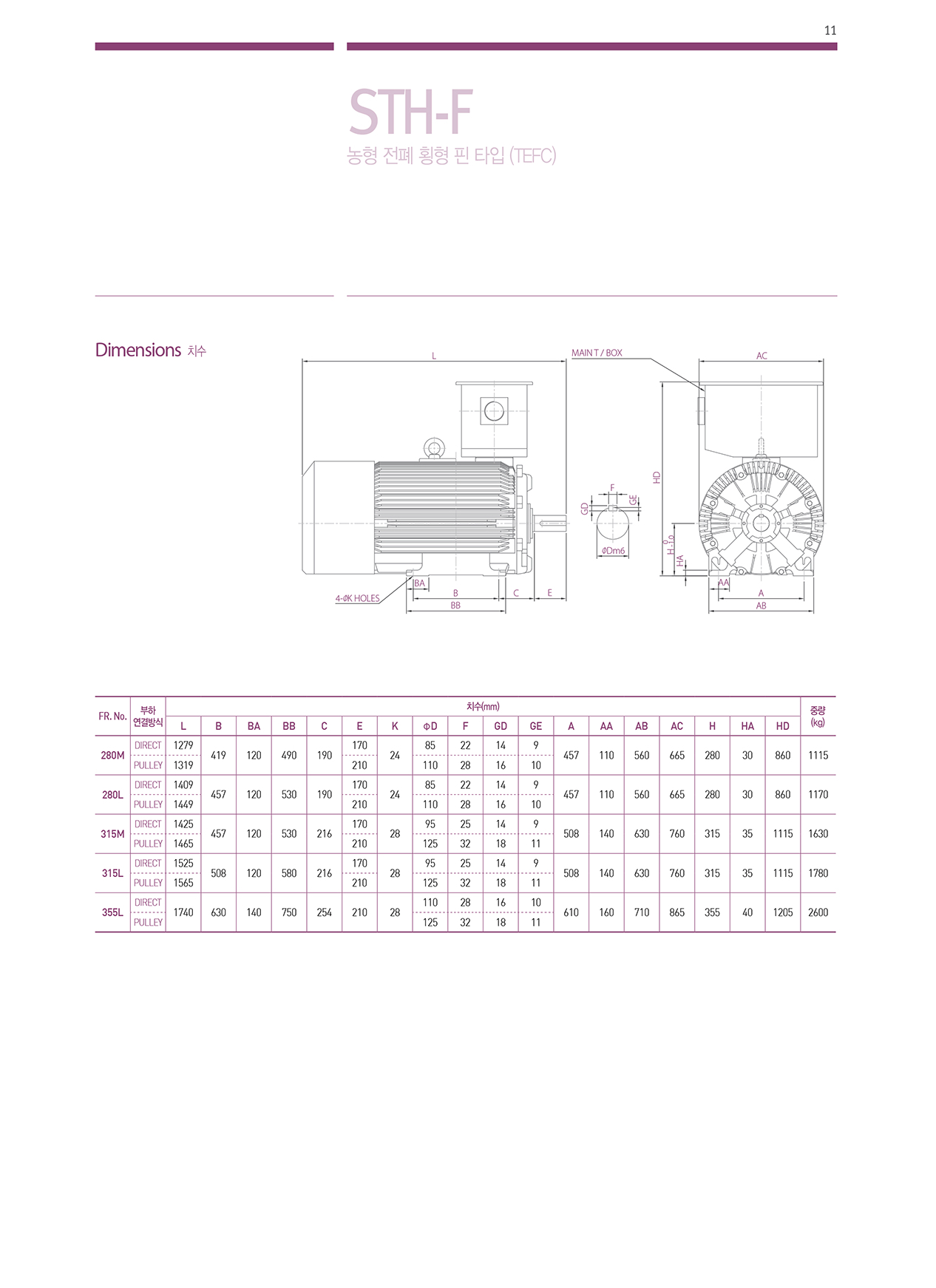 STH-F | 농형전폐횡형핀타입(TEFC)